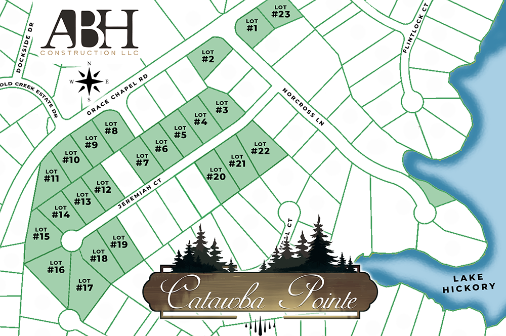 Discover the perfect place to build your dream home in our Catawba Pointe community. Each lot offers beautiful surroundings, spacious layouts, and convenient access to all the area has to offer. Please see the information below for lot acreage and pricing details.